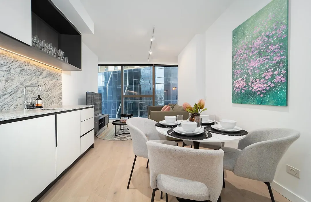 Family Friendly Cbd Apartment Next To Skybus With Pool Sauna Gym includes an equipped kitchen fitted with an oven and a dishwasher for self-catering. Family Friendly Cbd Apartment Next To Skybus With Pool Sauna Gym is 450 metres from La Trobe Street bus stop and 2.4 km from Flinders Street train station.